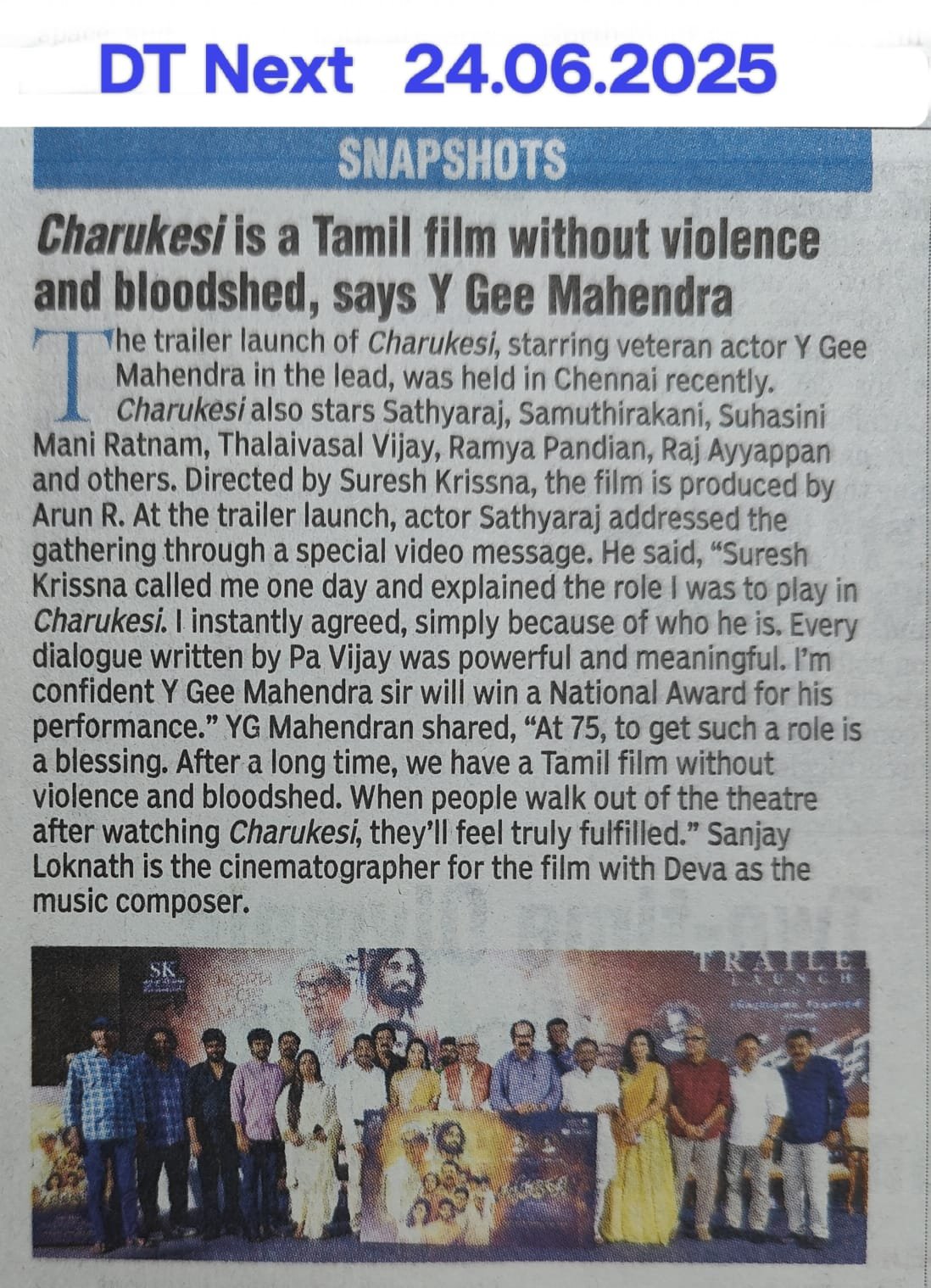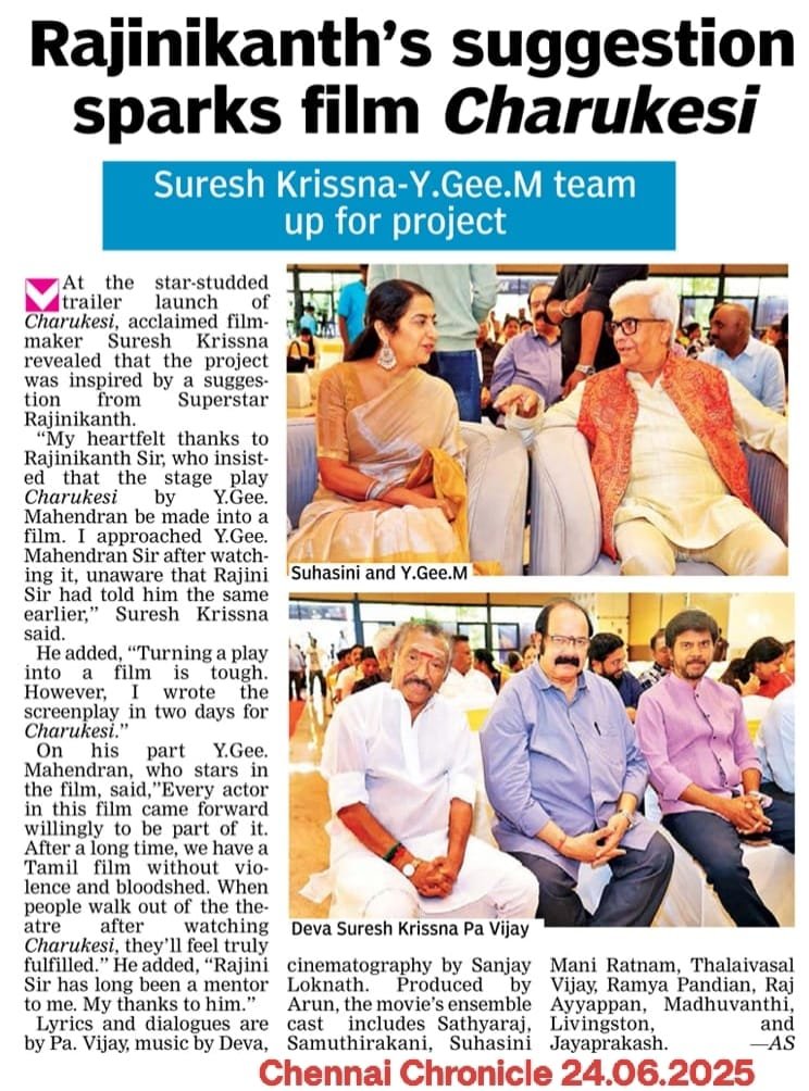 MY Heartfelt Thanx to Sangeetha Nataka Akademi for the Prestigious Puraskar for 2021.for Theatre. Receiving it in my 61st continuous year of Theatre Activity and in the Year of CHARUKESI is a special bonus and under the MODI GOVT is an ADDED GIFT. The AWARD goes to TAMIL THEATRE And to everyone involved in it and every artist and technician involved in my career. My Thanx to PERUMAL ..My PRANAMS to Mr & Mrs YGP and Pattu who introduced me to Tamil Theatre..My wife Sudha and Kids Madhu & Harsha and his wife Shwetha and my grandchildren handsome Ritvik & cutie Dheeksha for their support Thanx also to my extended family UAA
