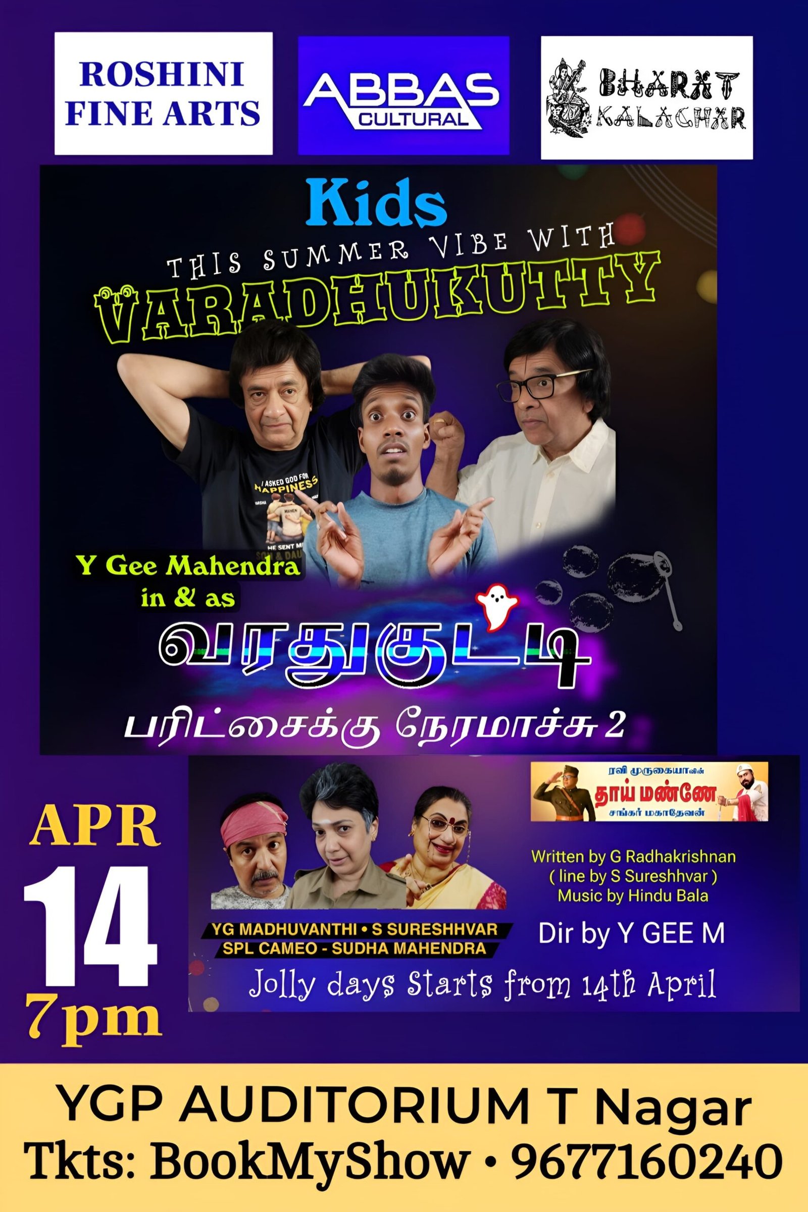 Varadu Kutty—Paritchaikku Neramachu 2 by UAA in its 74th year with YGee Mahendra in the title role...supported by Madhuvanthi Sureshwar & Karthik.